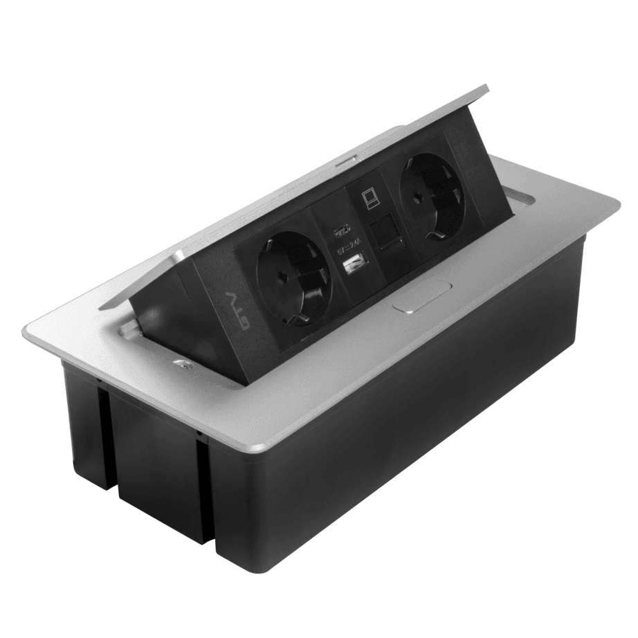 Innfelld borðtengieining með rafmagni, USB og nettengingu – ál