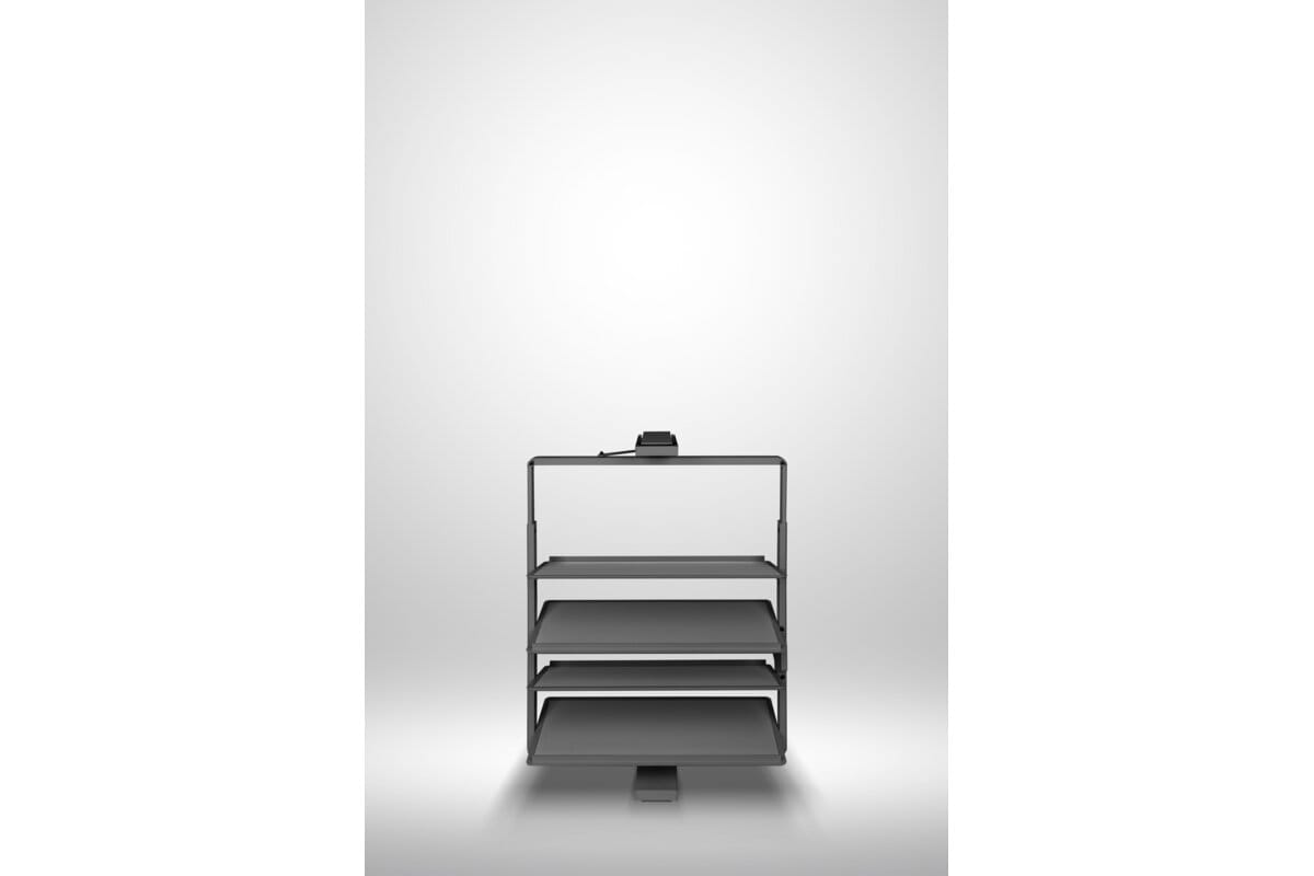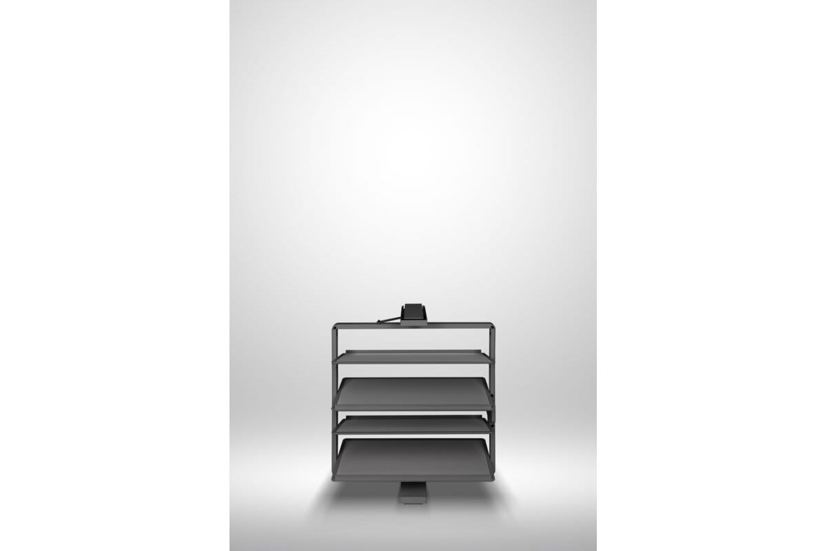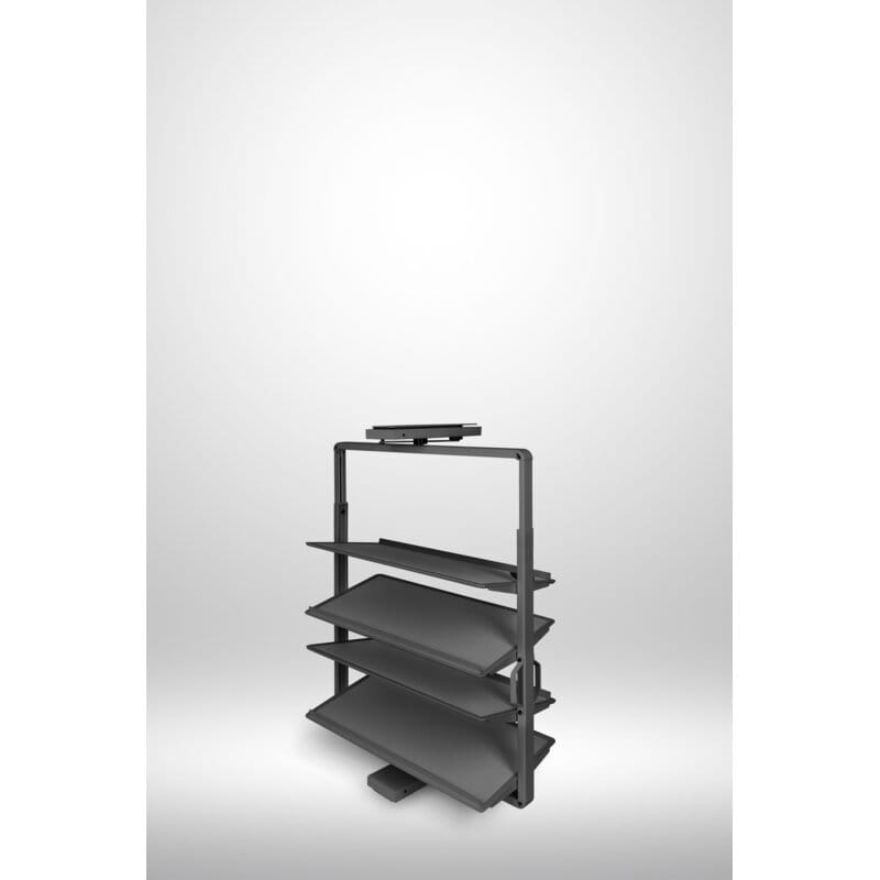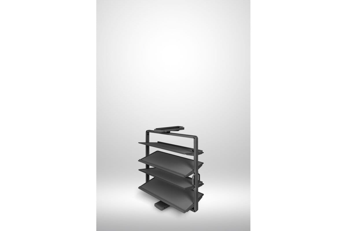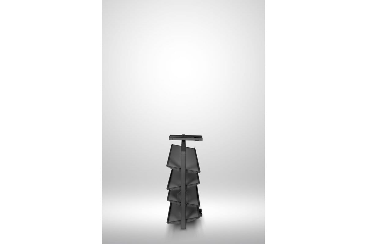 Snúanlegur skórekki með 4 hillum í antrasít. Góð lausn fyrir minni fataskápa þar sem mikilvægt er að nýta plássið vel og halda góðu skipulagi.